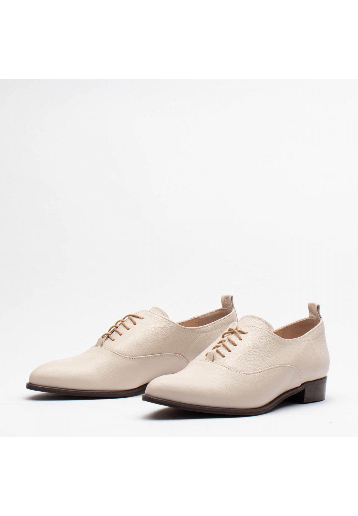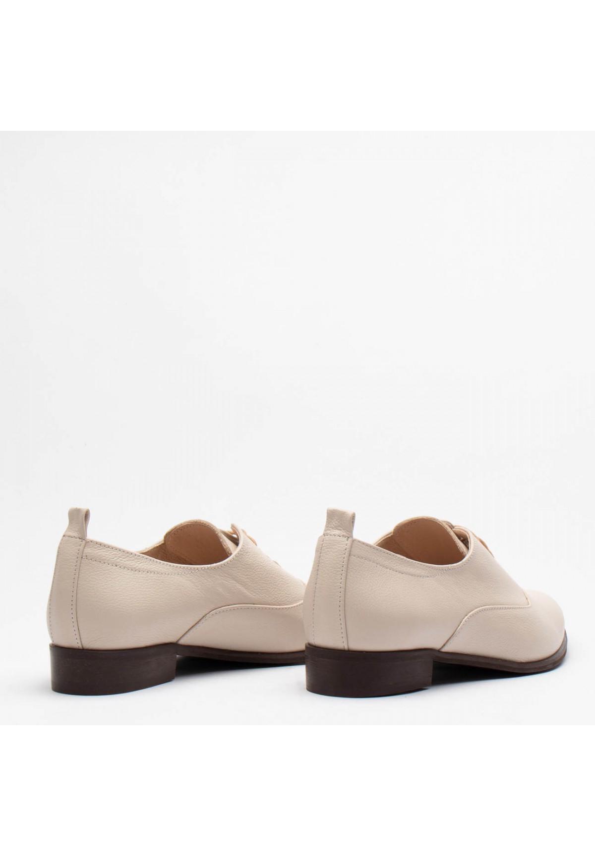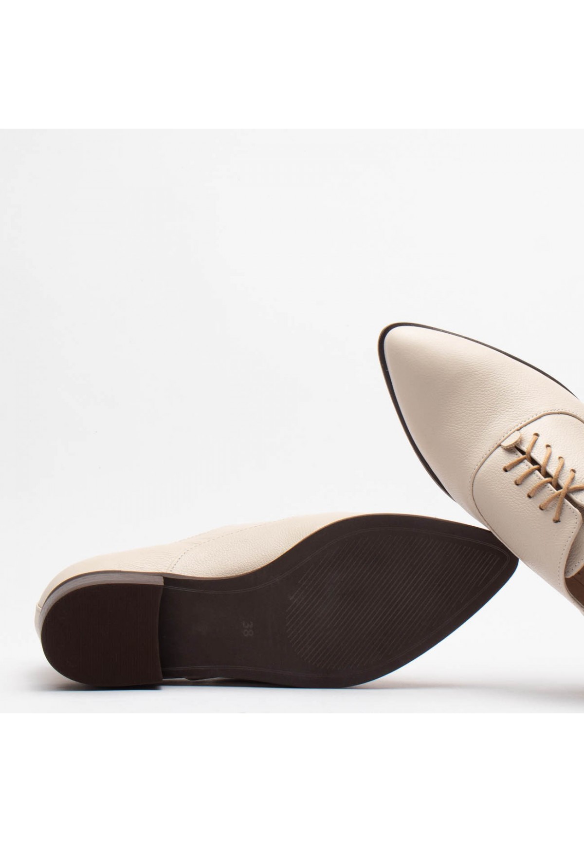 Eleganckie półbuty damskie, stworzone z wysokiej jakości skóry naturalnej o gładkiej fakturze, wyróżniają się subtelnością i komfortem noszenia. Ich niski obcas zapewnia stabilność, idealny zarówno na co dzień, jak i na specjalne okazje. Wiązane za pomocą delikatnych, okrągłych sznurówek, zapewniają doskonałe dopasowanie do stopy. Nosek sięgający ku szpicowi dodaje finezji, podkreślając kobiecy design. Wnętrze półbutów wyścielane jest miękką skórą naturalną, zapewniającą odpowiednią wentylację i uczucie miękkości podczas noszenia. Dodatkowo, wkładka wykonana z wysokiej jakości skóry naturalnej gwarantuje wygodę i wsparcie dla stopy przez cały dzień. Te półbuty są idealnym wyborem dla kobiet ceniących zarówno styl, jak i komfort.