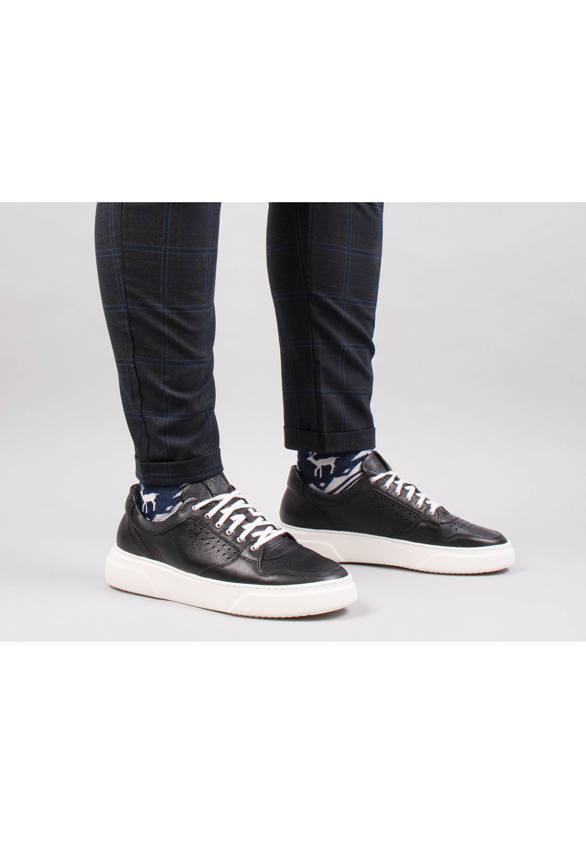Sportowe buty wykonane z naturalnej skóry licowej w kolorze czarnym. Obuwie dla ceniących sobie wygodę i styl w codziennym użytkowaniu.