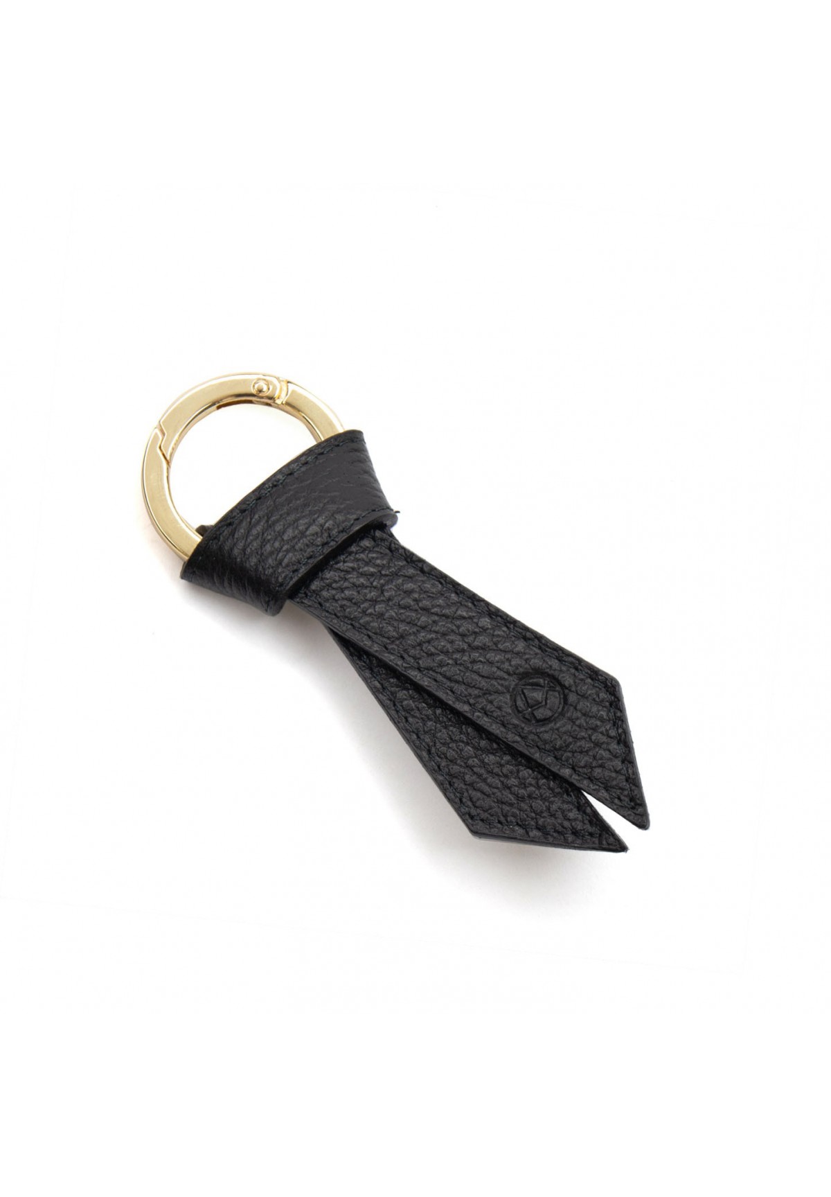 Brelok AKARDO wykonany z najwyższej jakości naturalnej skóry o groszkowanej fakturze, w kolorze czarnym jest prawdziwym wyrazem stylu i luksusu. Ma długość 13 cm, co czyni go zarówno praktycznym, jak i efektownym dodatkiem do Twojego kluczy, torebki lub plecaka. Jest zawieszony na okrągłym karabińczyku, o średnicy 4 cm. Ten złoty akcent nadaje brelokowi dodatkowej elegancji.
