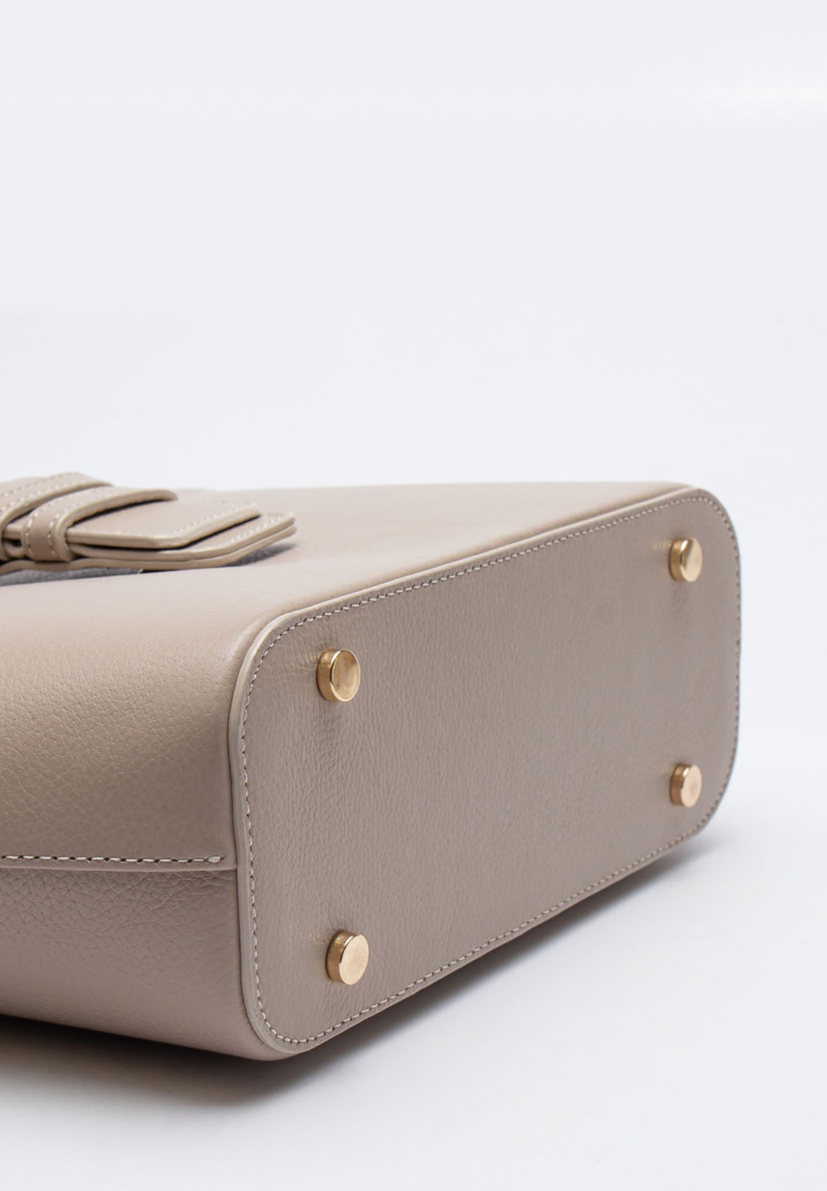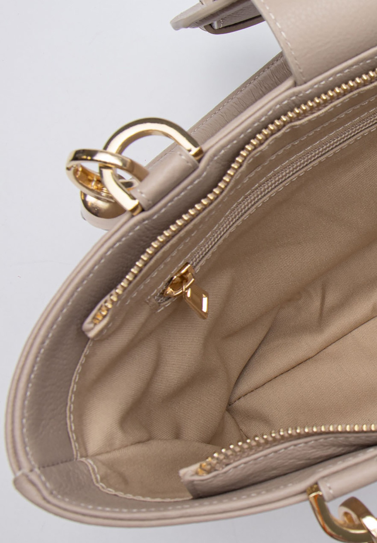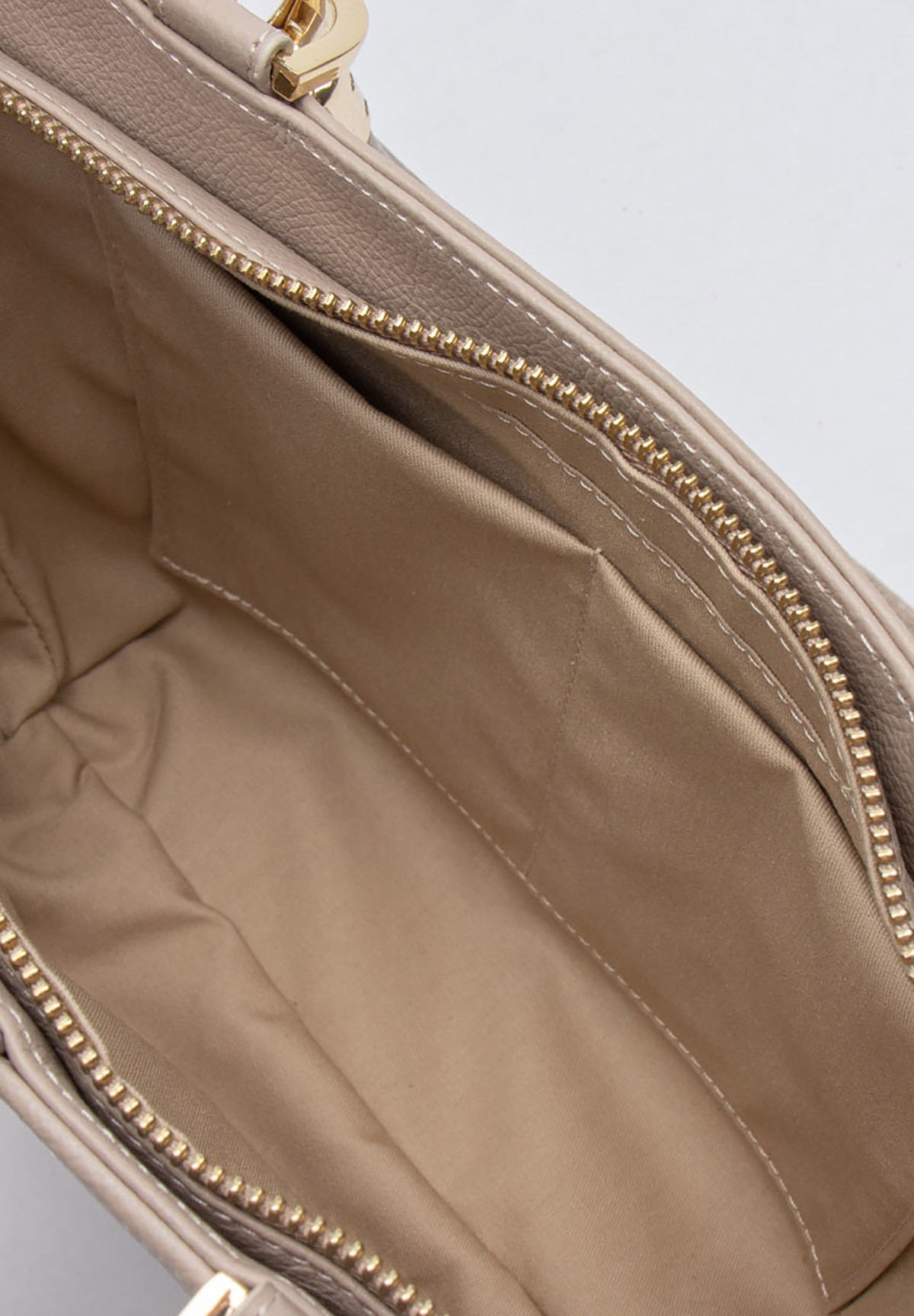 Torebka zapinana jest na solidny zamek oraz pasek z klamrą, co zapewnia bezpieczeństwo Twoim wartościowym przedmiotom. Wewnątrz znajduje się jedna pojemna komora, w której bez problemu pomieszczą się Twoje niezbędne rzeczy. Materiałowa podszewka dodaje torebce elegancji i sprawia, że jest łatwa w utrzymaniu czystości. Dodatkowo, wewnątrz znajdziesz jedną kieszeń zapinaną na zamek, idealną do przechowywania drobnych przedmiotów, oraz dwie wsuwane kieszonki na rzeczy, do których chcesz mieć szybki dostęp. Rączki torebki są odpinane.