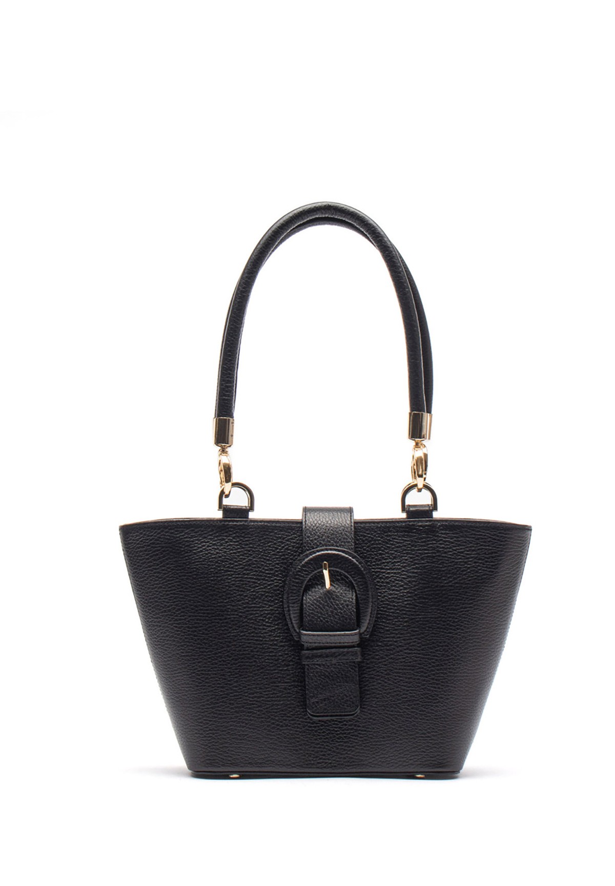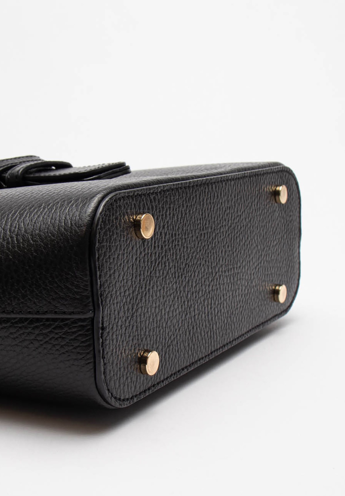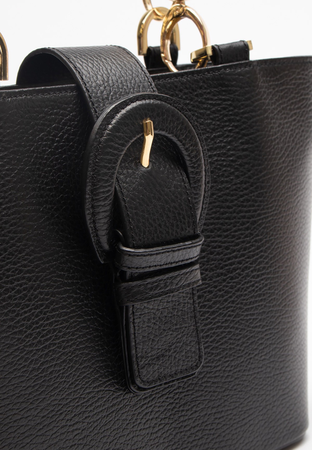 Torebka zapinana jest na solidny zamek oraz pasek z klamrą, co zapewnia bezpieczeństwo Twoim wartościowym przedmiotom. Wewnątrz znajduje się jedna pojemna komora, w której bez problemu pomieszczą się Twoje niezbędne rzeczy. Materiałowa podszewka dodaje torebce elegancji i sprawia, że jest łatwa w utrzymaniu czystości. Dodatkowo, wewnątrz znajdziesz jedną kieszeń zapinaną na zamek, idealną do przechowywania drobnych przedmiotów, oraz dwie wsuwane kieszonki na rzeczy, do których chcesz mieć szybki dostęp. Rączki torebki są odpinane.