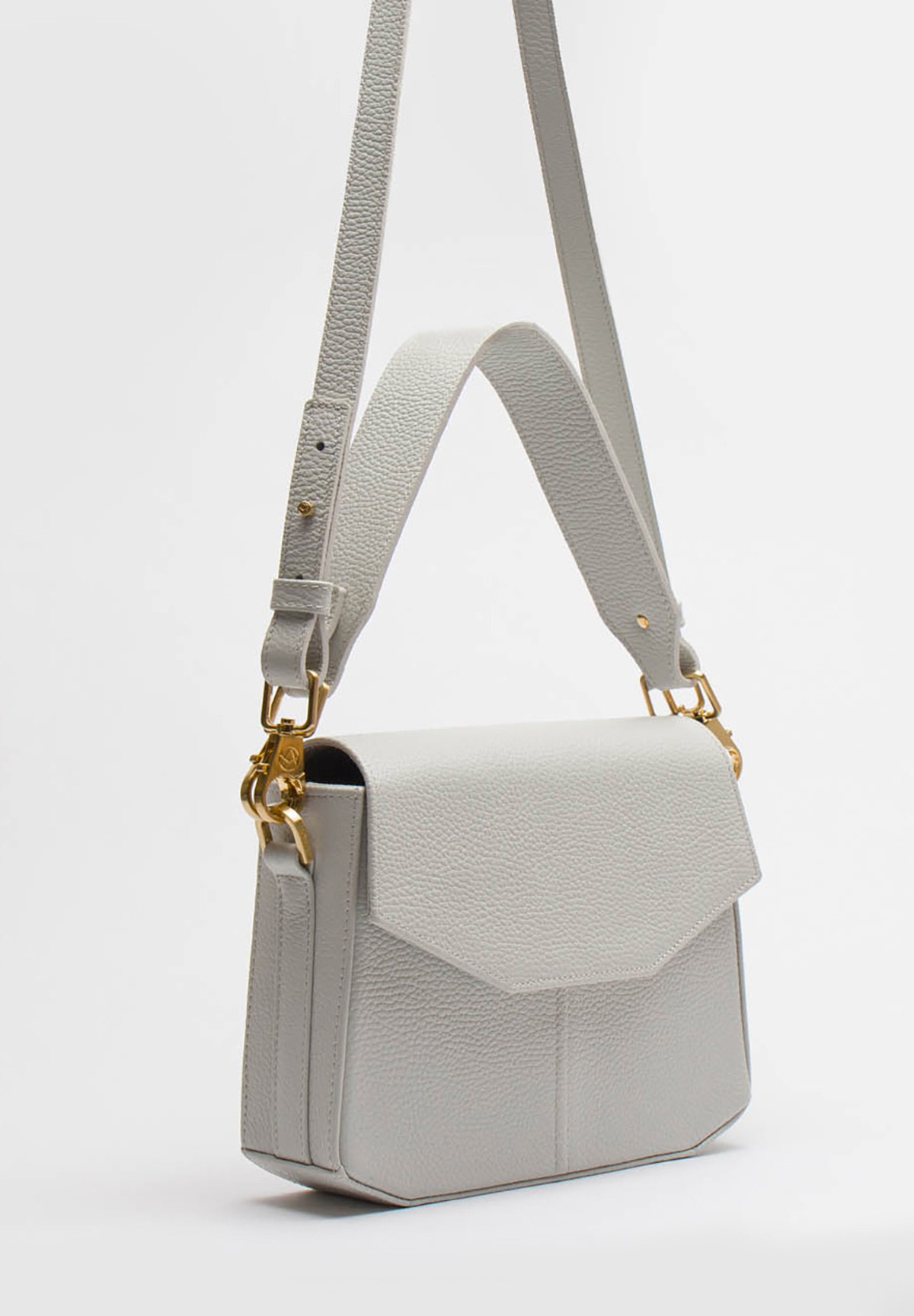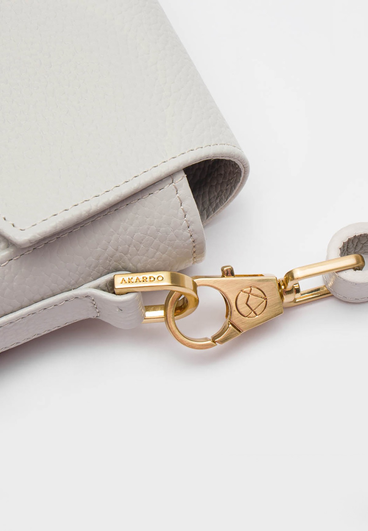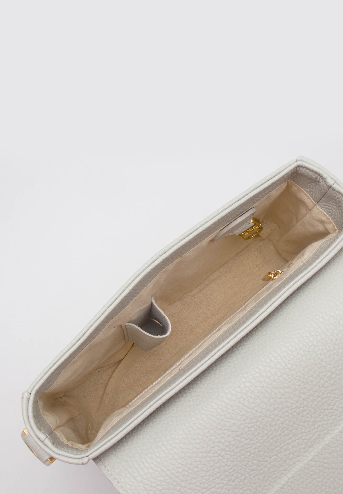 Wyjątkowa torebka LUCIA wykonana z wysokiej jakości skóry naturalnej o efektownej groszkowanej fakturze w kolorze kości słoniowej to ideał dla każdej kobiety ceniącej styl i funkcjonalność. Jej sztywna forma pozwala na zachowanie eleganckiego kształtu, podkreślając jednocześnie prestiżowy charakter. Ten mały model typu crossbody jest wygodny w użytkowaniu i świetnie sprawdza się na co dzień. Zapinany za pomocą klapy na dwa magnesy, zapewnia bezpieczne przechowywanie osobistych przedmiotów. Torebka wyposażona jest w dwa paski zakończone logowanymi karabińczykami: krótki, nieregulowany, o szerokości około 5 cm, oraz dłuższy, który można łatwo dostosować do swoich potrzeb. Wewnątrz znajduje się jedna główna komora, wyściełana gładką bawełnianą podszewką w naturalnym kolorze. Dodatkowo, w środku znajdują się dwie praktyczne kieszonki - jedna zamykana na zamek, idealna na dokumenty czy karty, oraz wąska kieszonka, idealna na ulubioną szminkę lub inne drobiazgi. Wnętrze torebki uzupełnia również magnetyczny brelok, ułatwiający przechowywanie kluczy lub innych drobnych przedmiotów. Z tyłu torebki widnieje logo marki AKARDO, symbolizując nie tylko wysoką jakość, ale także styl i prestiż. Ta torebka to doskonałe połączenie elegancji, funkcjonalności i luksusu dla współczesnej kobiety.