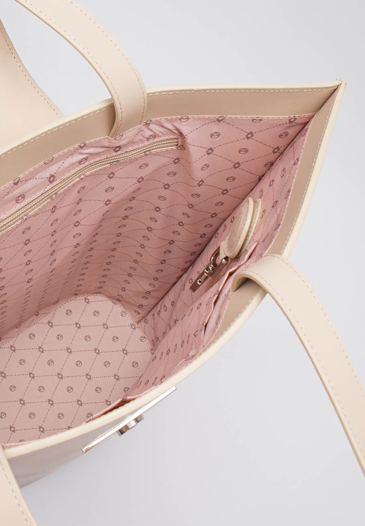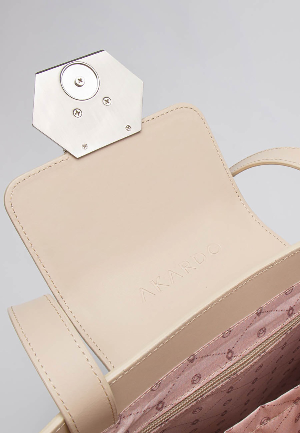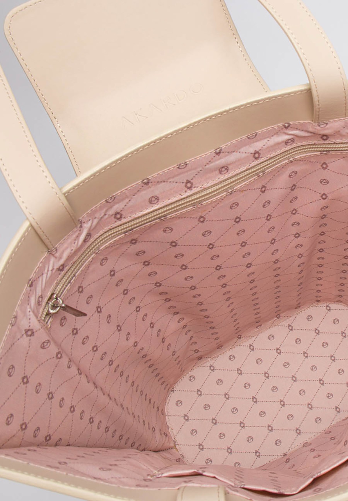 Wnętrze torebki zachwyca jasnoróżową, logowaną podszewką AKARDO. Jedna komora oferuje wystarczająco dużo miejsca na codzienne niezbędniki. Dodatkowo, w środku znajdziesz jedną zapinaną kieszonkę, jedną wsuwaną kieszonkę oraz praktyczny magnetyczny brelok na klucze. Dodaj do swojej kolekcji wyjątkową jasnobeżową shopperkę HARRIET i ciesz się luksusem oraz funkcjonalnością każdego dnia!