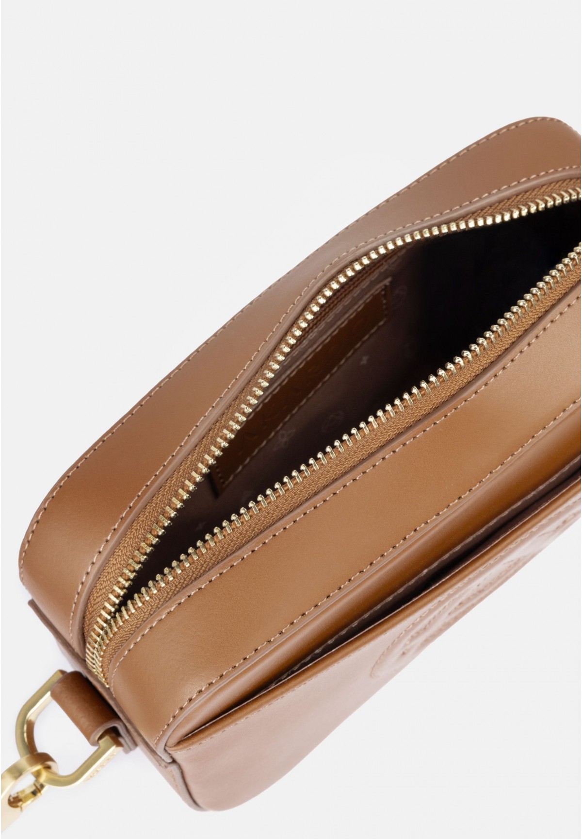 Mała, kompaktowa torebka ADELE wykonana z brązowej skóry naturalnej, ozdobiona wypukłym logo marki AKARDO, to elegancki i funkcjonalny dodatek. Jej prostokątny kształt oraz zapięcie na zamek zapewniają wygodę użytkowania. Po bokach torebki znajdują się dwie wpuszczane kieszonki, idealne do przechowywania drobiazgów. Odpinany, regulowany pasek o szerokości 3 cm można dostosować w zakresie 89-102 cm, co pozwala na noszenie torebki na różne sposoby. Złote, logowane okucia dodają jej wyjątkowego charakteru. Wnętrze torebki wyścielane jest logowaną podszewką w kolorze torebki, a dodatkowa kieszonka zapinana na zamek zapewnia dodatkową przestrzeń na najważniejsze rzeczy.