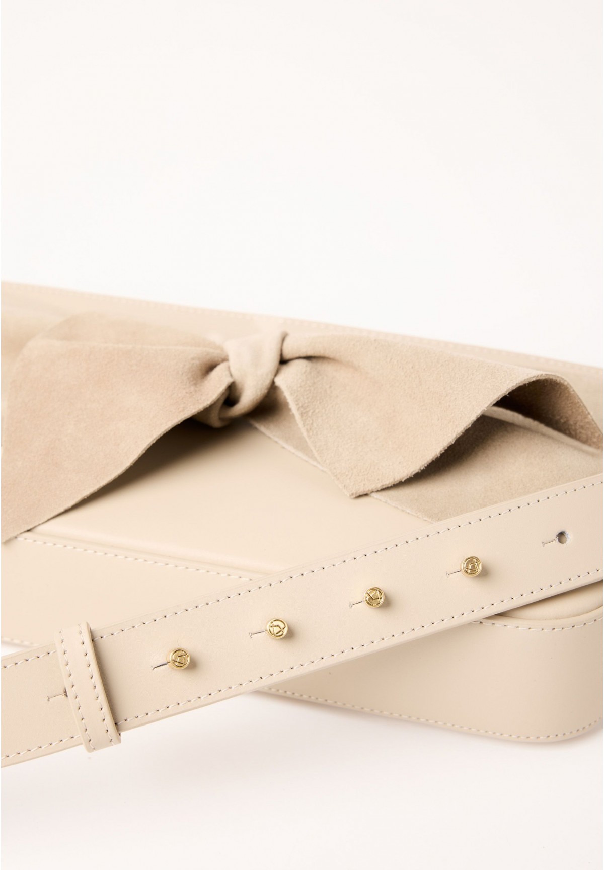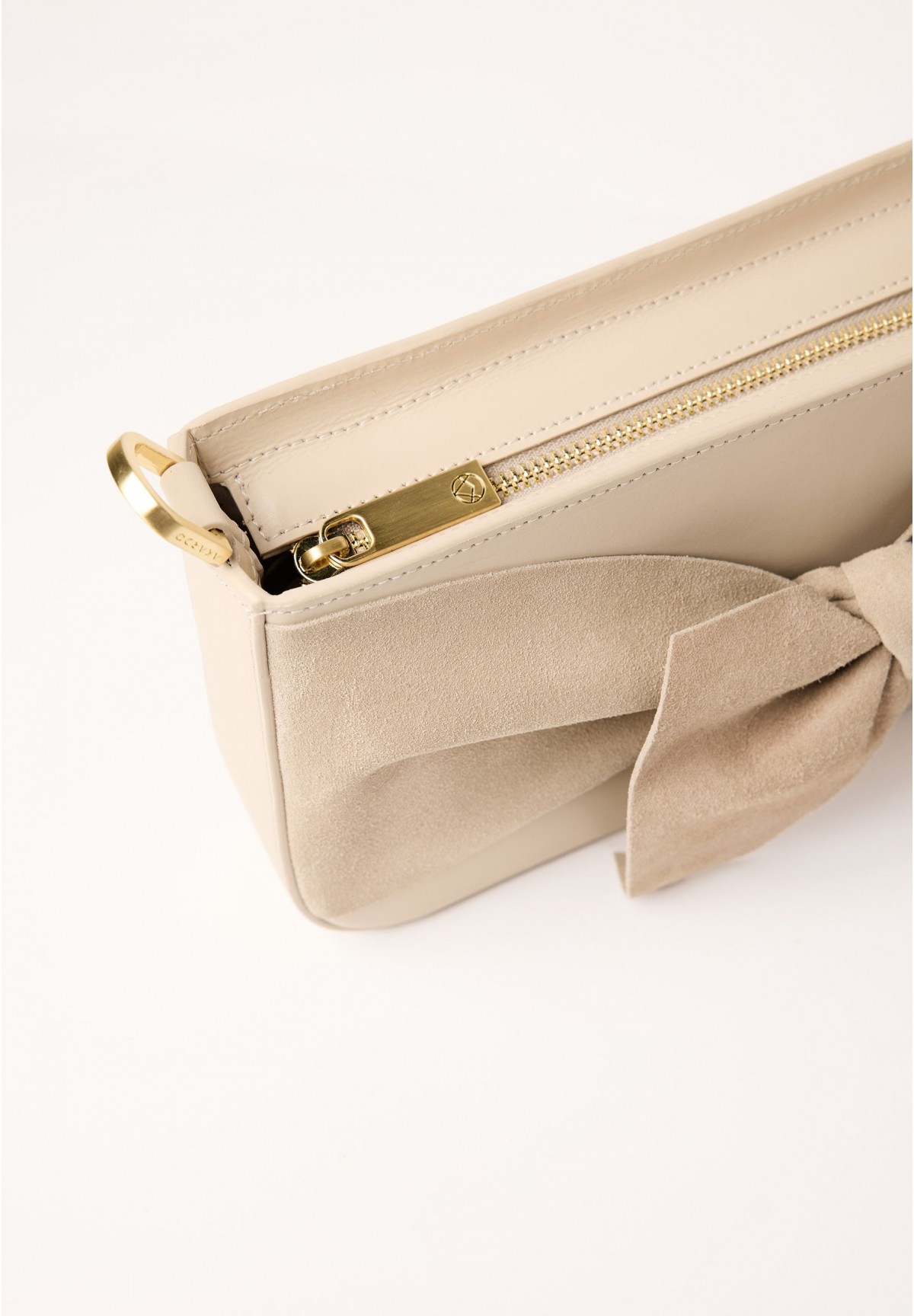 Torebka skórzana LUCILLE to kwintesencja elegancji i funkcjonalności. Ta wyjątkowa torebka-bagietka jest wykonana z najwyższej jakości naturalnej skóry licowej i ozdobiona zamszową kokardą. Jest starannie usztywniona, dzięki czemu zachowuje swój idealny kształt, nawet podczas sporego wypełnienia. Jej unikalne przełamanie nie tylko dodaje estetyki, ale również zapewnia szerokie otwarcie i łatwy dostęp do wnętrza. Praktyczność podkreślają dwa odpinane paski, oferujące różnorodne sposoby noszenia. Wnętrze torebki to jedna główna komora z dodatkową, zamykaną kieszonką, wykończona wysokiej jakości podszewką. Charakterystycznym detalem AKARDO jest magnetyczny brelok na klucze, zapewniający ich łatwe odnalezienie. Całość dopełnia dyskretne, wytłoczone logo AKARDO.