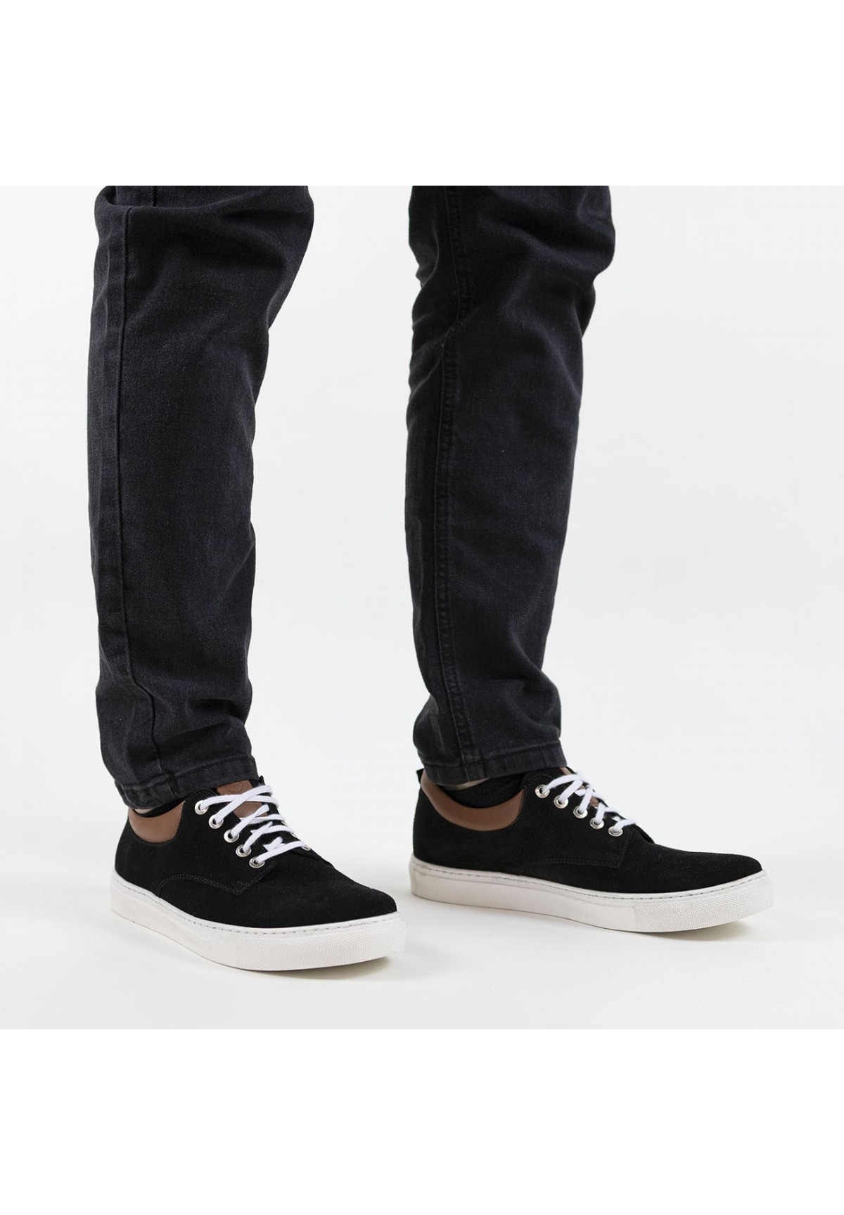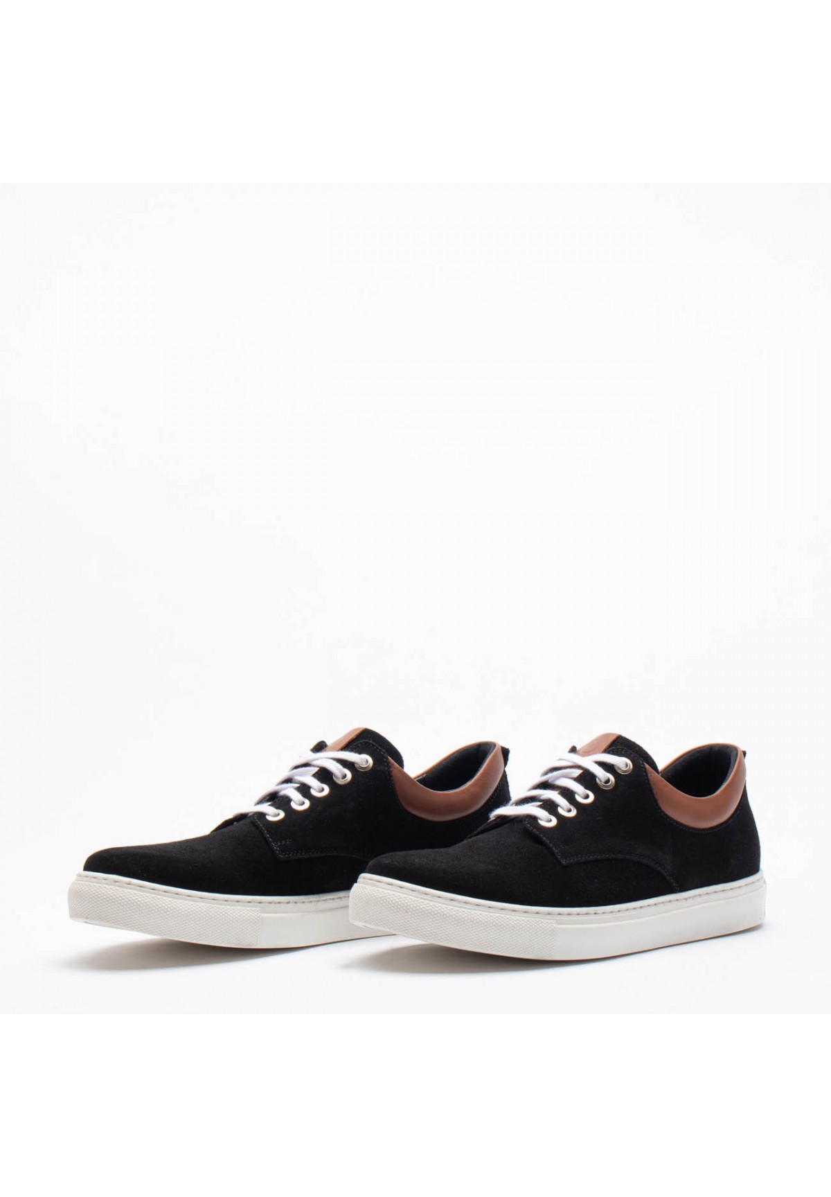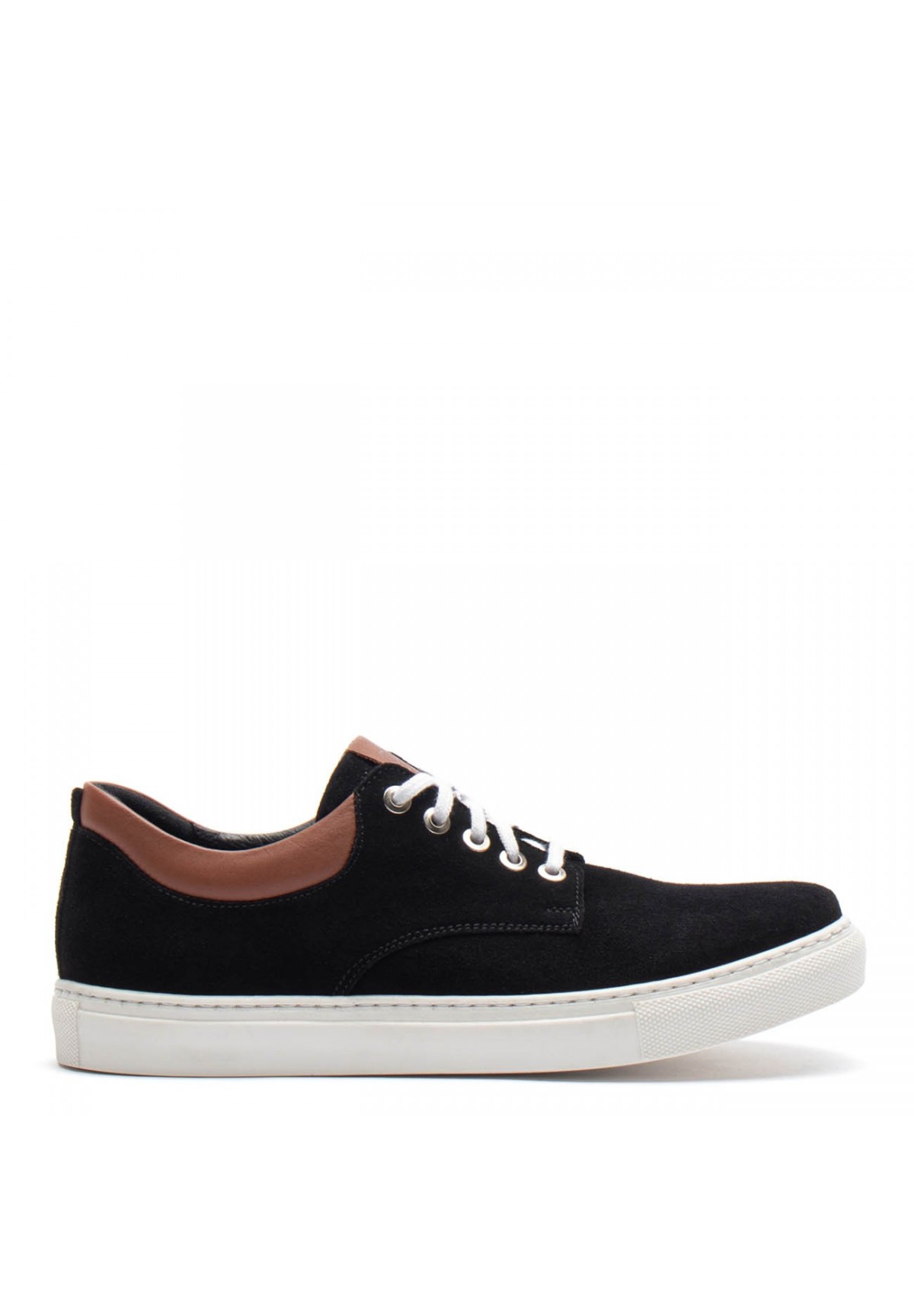 Buty męskie wykonane z welurowej skóry naturalnej w głębokim kolorze czarnym, emanują prestiżem i klasą. Ich biała podeszwa dodaje im świeżości i kontrastuje z ciemnym kolorem skóry, tworząc efektowne połączenie. Wstawka ze skóry licowej w brązowym odcieniu przy kostce nadaje butom subtelny akcent i wyróżnia je spośród innych modeli. To szczegół, który dodaje im charakteru i unikalnego wyrazu. Prezentują się doskonale, ale także zapewniają niezrównany komfort noszenia. Ich doskonale zaprojektowana konstrukcja gwarantuje wsparcie dla stóp, co sprawia, że możesz cieszyć się wygodą przez cały dzień, bez względu na aktywność. Wnętrze butów zostało wyściełane wysokiej jakości skórzaną podszewką oraz wkładką, co zapewnia nie tylko miękkość, ale także trwałość i optymalne dopasowanie do Twoich stóp. To sprawia, że buty idealnie dopasowują się do Twoich potrzeb, zapewniając jednocześnie luksusowe uczucie noszenia. Zestaw te buty z klasycznymi spodniami i elegancką koszulą dla formalnego looku, albo połącz je z casualowymi jeansami i t-shirtem dla bardziej swobodnego stylu. Niezależnie od tego, jak będziesz je nosił, te trampki dodadzą Twojemu outfitowi niepowtarzalnego charakteru i sprawią, że będziesz czuł się zarówno stylowo, jak i wygodnie.