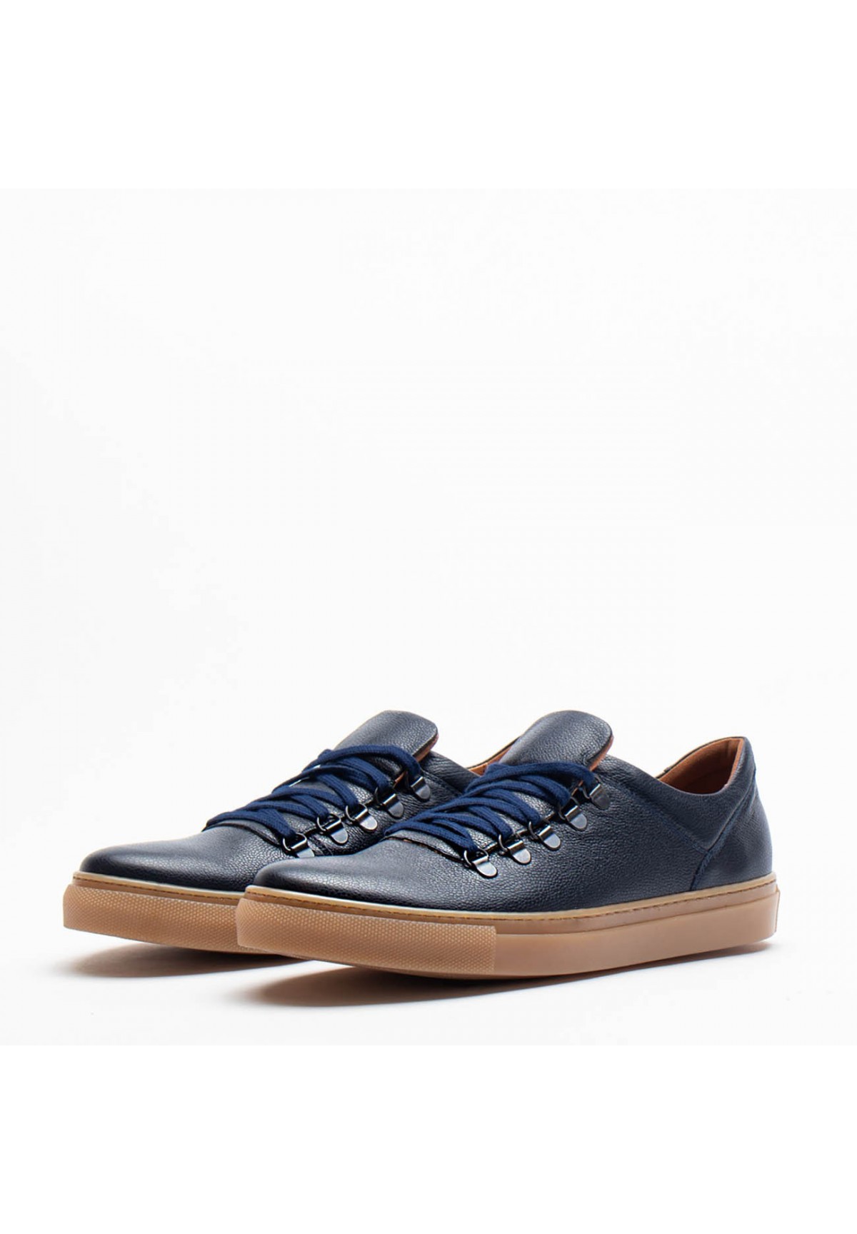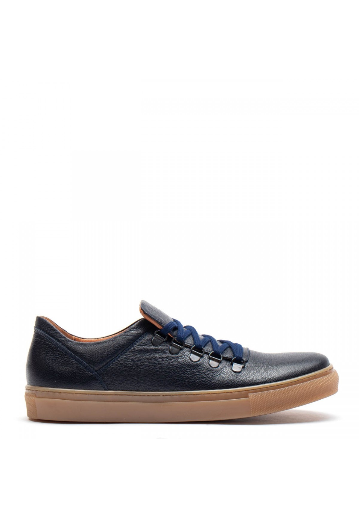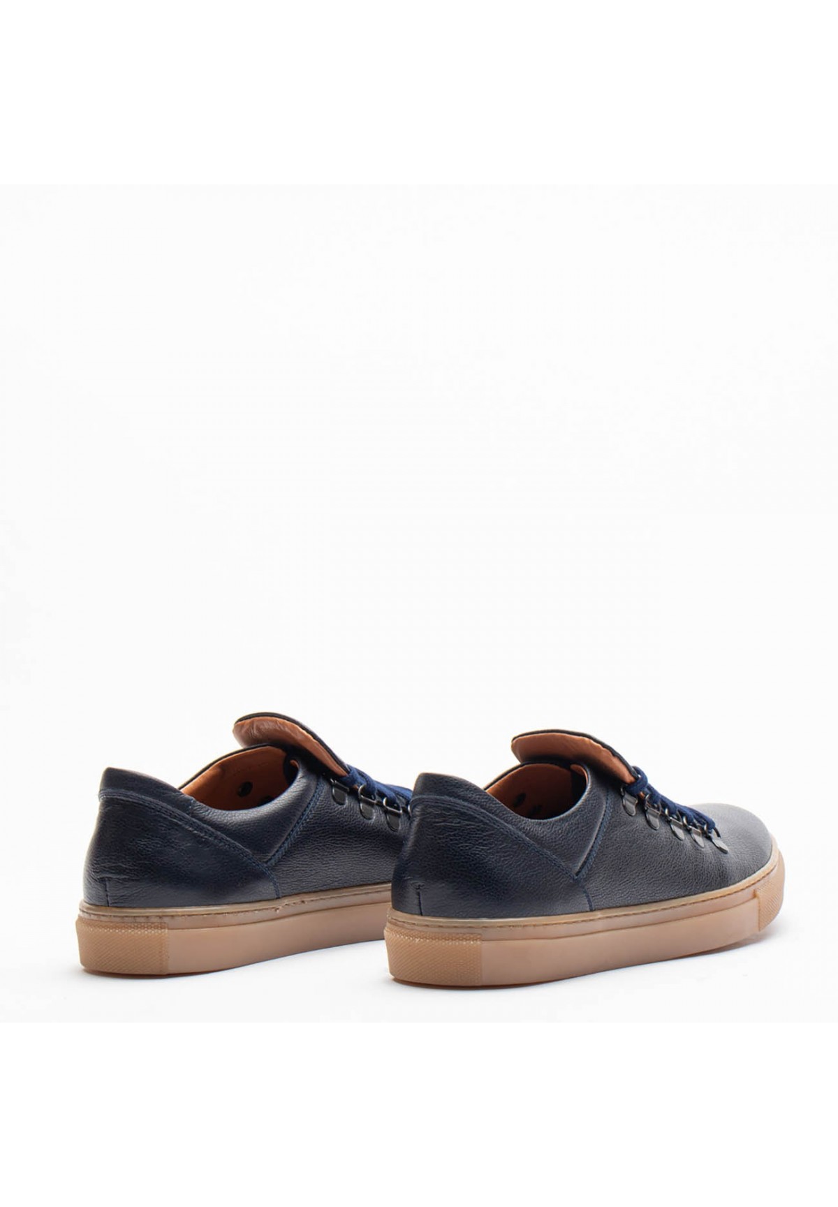 Buty męskie wykonane z wysokiej jakości skóry naturalnej o subtelnej, groszkowanej fakturze, prezentują się niezwykle stylowo. Ich głęboki odcień granatu dodaje im wyrafinowanego charakteru, podczas gdy beżowa podeszwa nadaje im lekkości i świeżości. Wygodne trampki zapewniają nie tylko świetny wygląd, ale także doskonałe wsparcie dla Twoich stóp. Ich starannie zaprojektowana konstrukcja gwarantuje komfort nawet podczas długotrwałego noszenia. Wnętrze butów zostało wyścielane wysokiej jakości skórzaną podszewką oraz wkładką, co sprawia, że stopy czują się komfortowo i chronione. To doskonała kombinacja miękkości i trwałości, która zapewnia maksymalny komfort przez cały dzień.