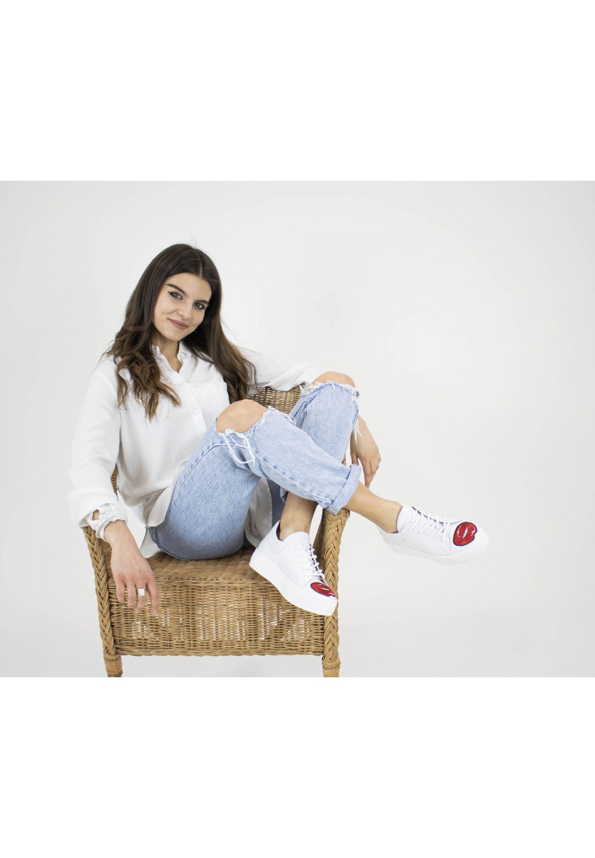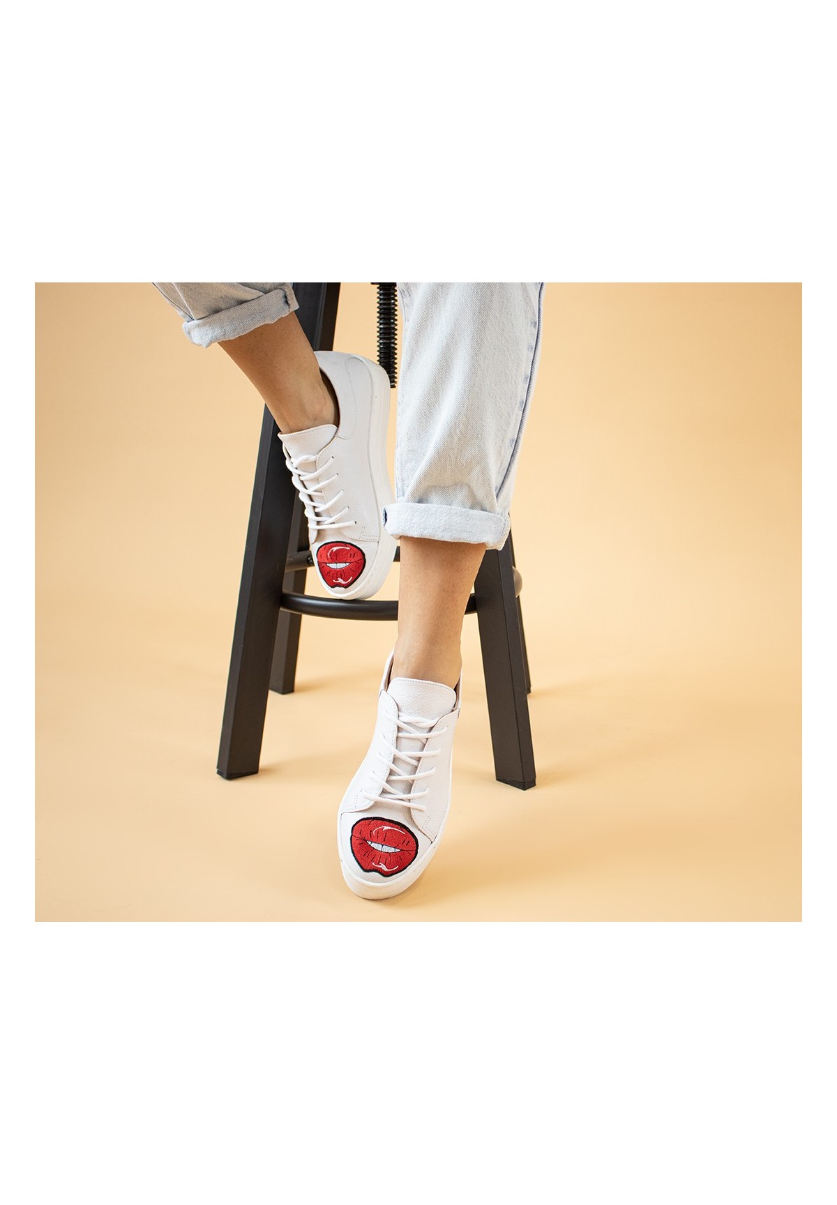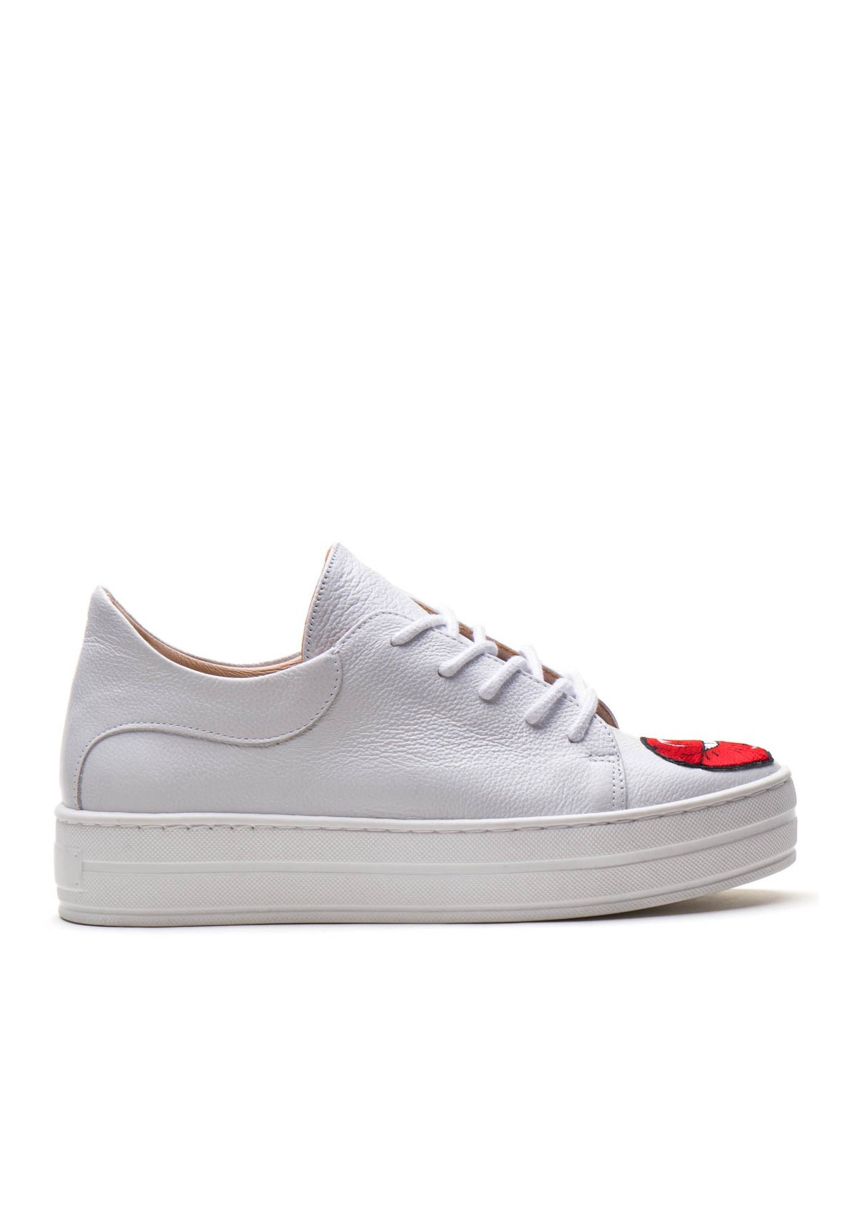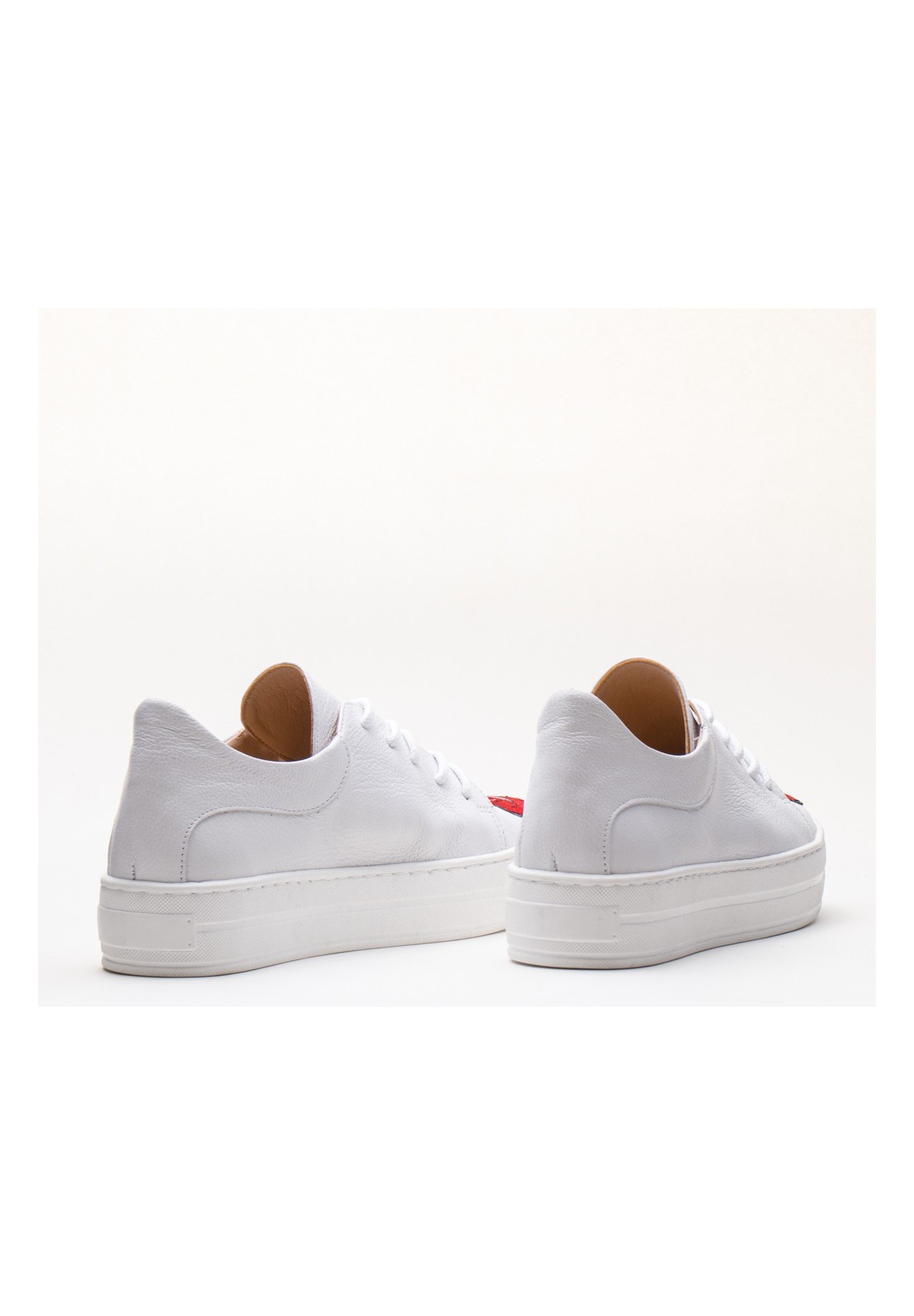 Trampki wykonane z naturalnej skóry licowej w kolorze białym. Posiadają ozdobny element.