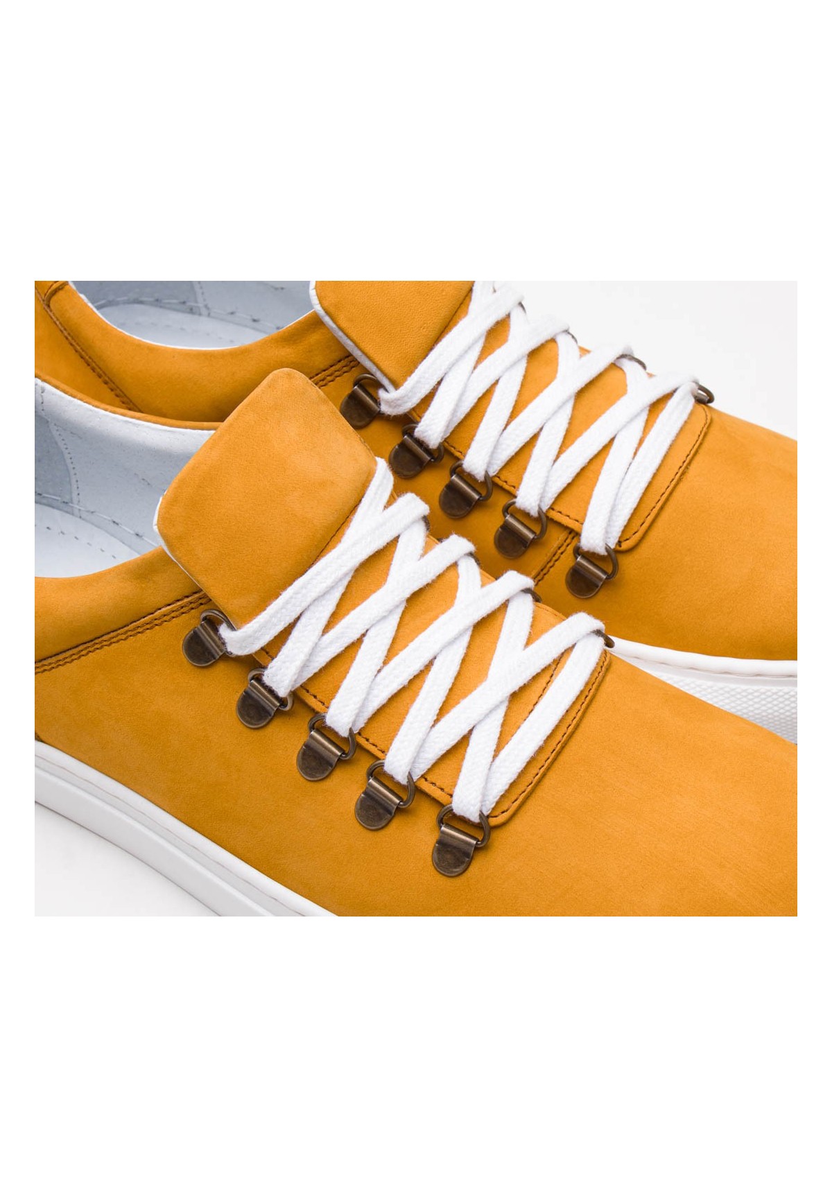 Wykonane z wysokiej jakości skóry nubukowej, męskie trampki, są doskonałym wyborem dla tych, którzy cenią sobie modny wygląd. Kolor żółty, który dominuje na powierzchni butów, nadaje im wyjątkowego charakteru i wyróżnia je spośród innego obuwia. To idealny wybór dla tych, którzy chcą dodać odrobinę świeżości i energii do swojej stylizacji. Uniwersalny model tych trampek sprawia, że doskonale komponują się z wieloma różnymi stylami od casual po bardziej sportowe.