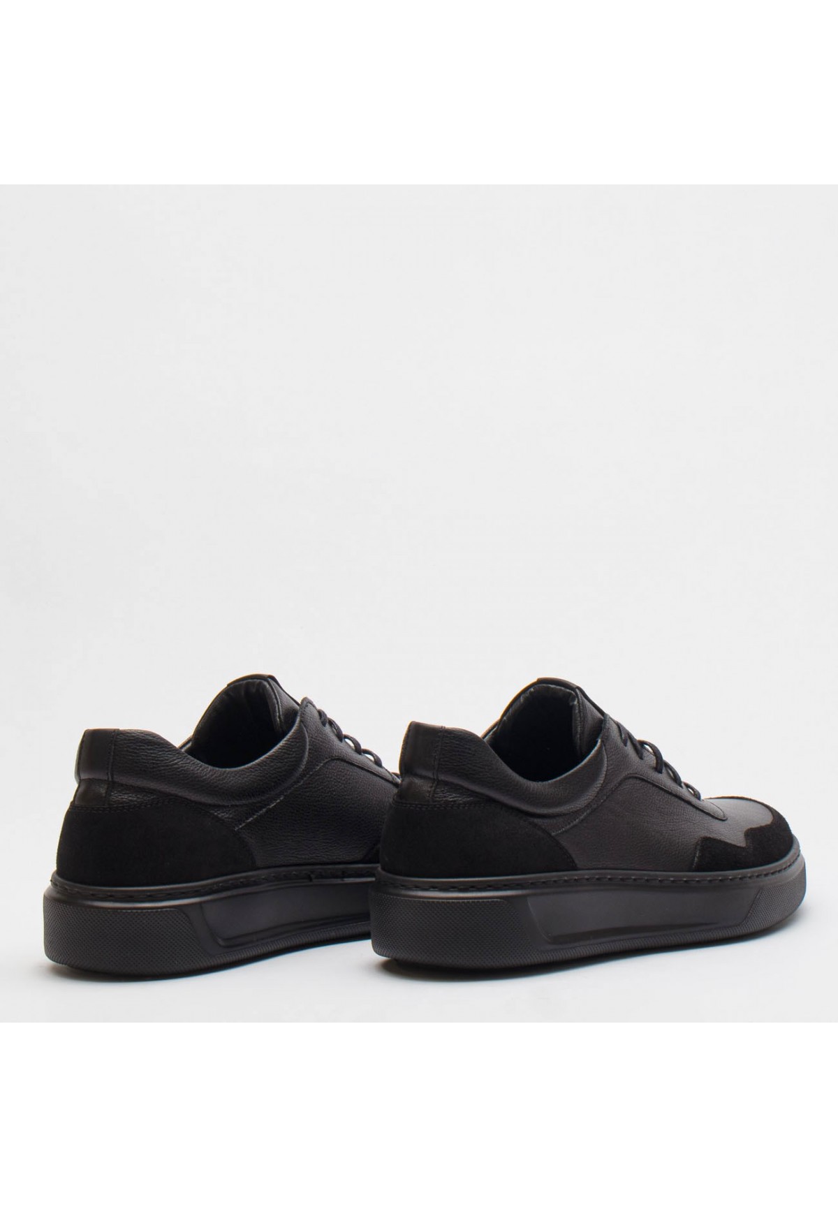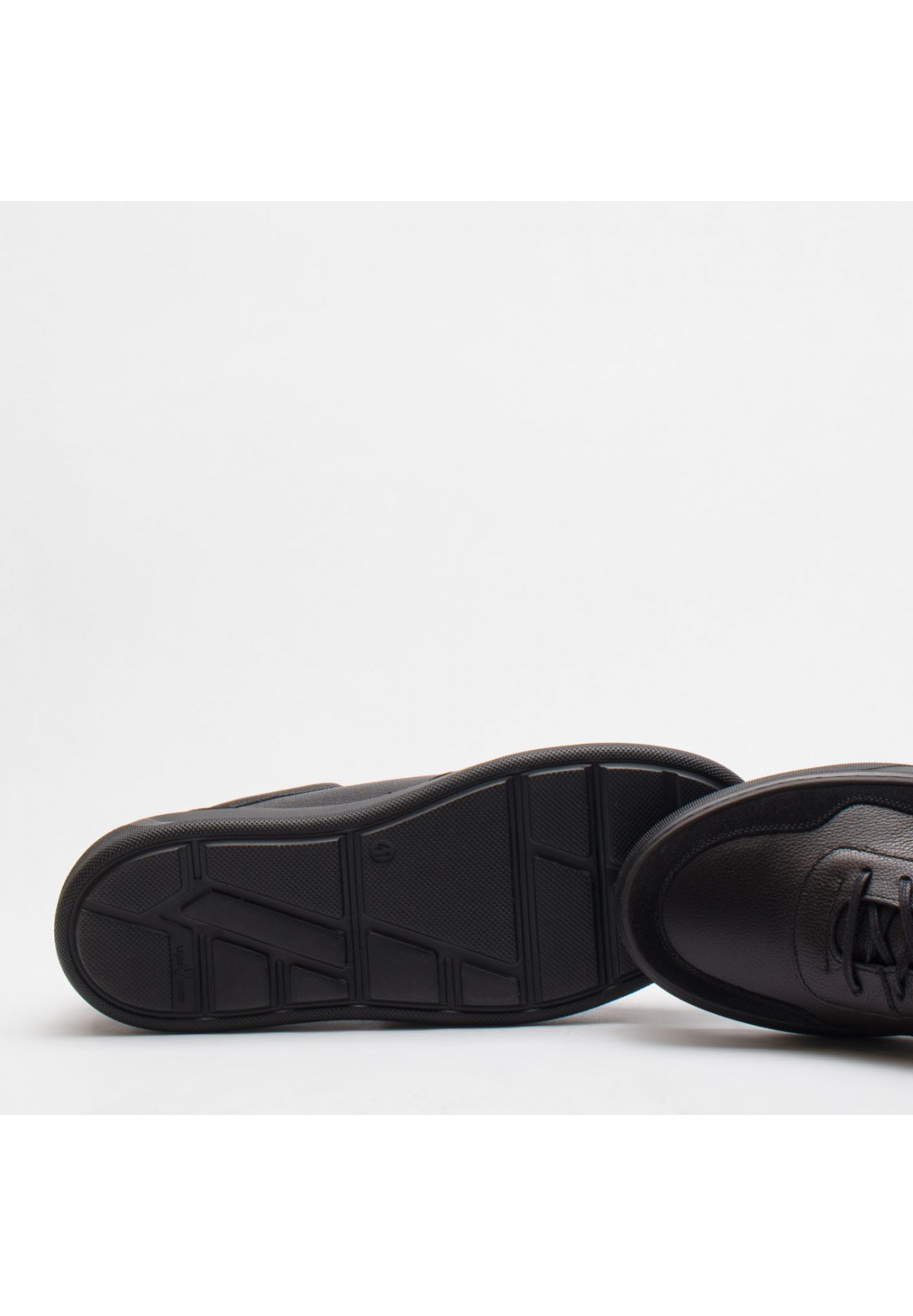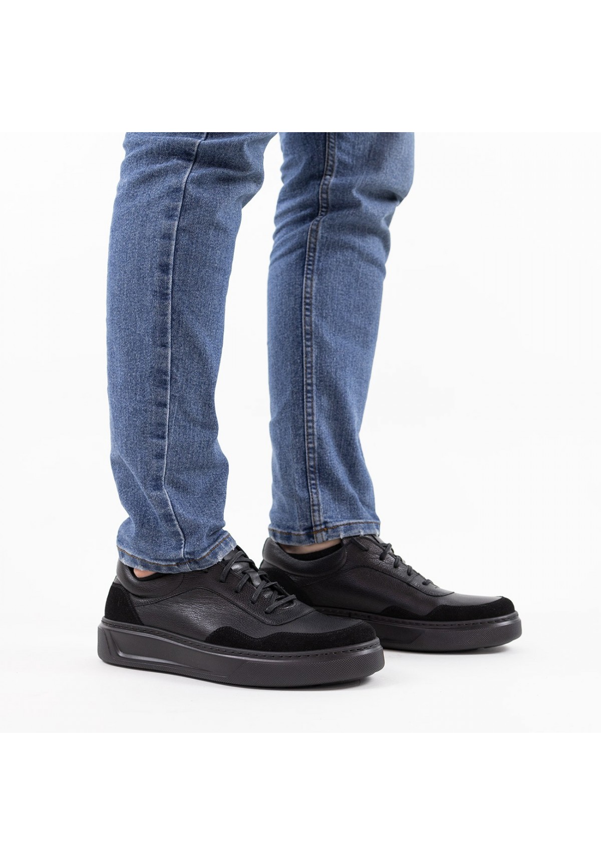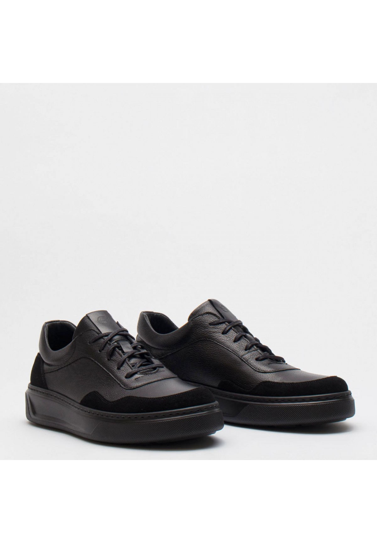 Casualowe buty męskie, które zachwycają swoim wyjątkowym stylem i solidnym wykonaniem. Wykonane z najwyższej jakości skóry naturalnej licowej. Ich design uzupełniają wstawki ze skóry welurowej, dodając niepowtarzalnego uroku i tekstury. Groszkowana faktura skóry nadaje tym butom wyjątkowego charakteru. Delikatne wykończenie sprawia, że każdy detal jest starannie przemyślany, tworząc niezapomniany efekt wizualny. Buty zostały osadzone na solidnej, czarnej podeszwie, która gwarantuje komfort i stabilność podczas noszenia. Sznurówki umożliwiają precyzyjne dopasowanie, zapewniając użytkownikowi idealne wsparcie i pewność kroku.