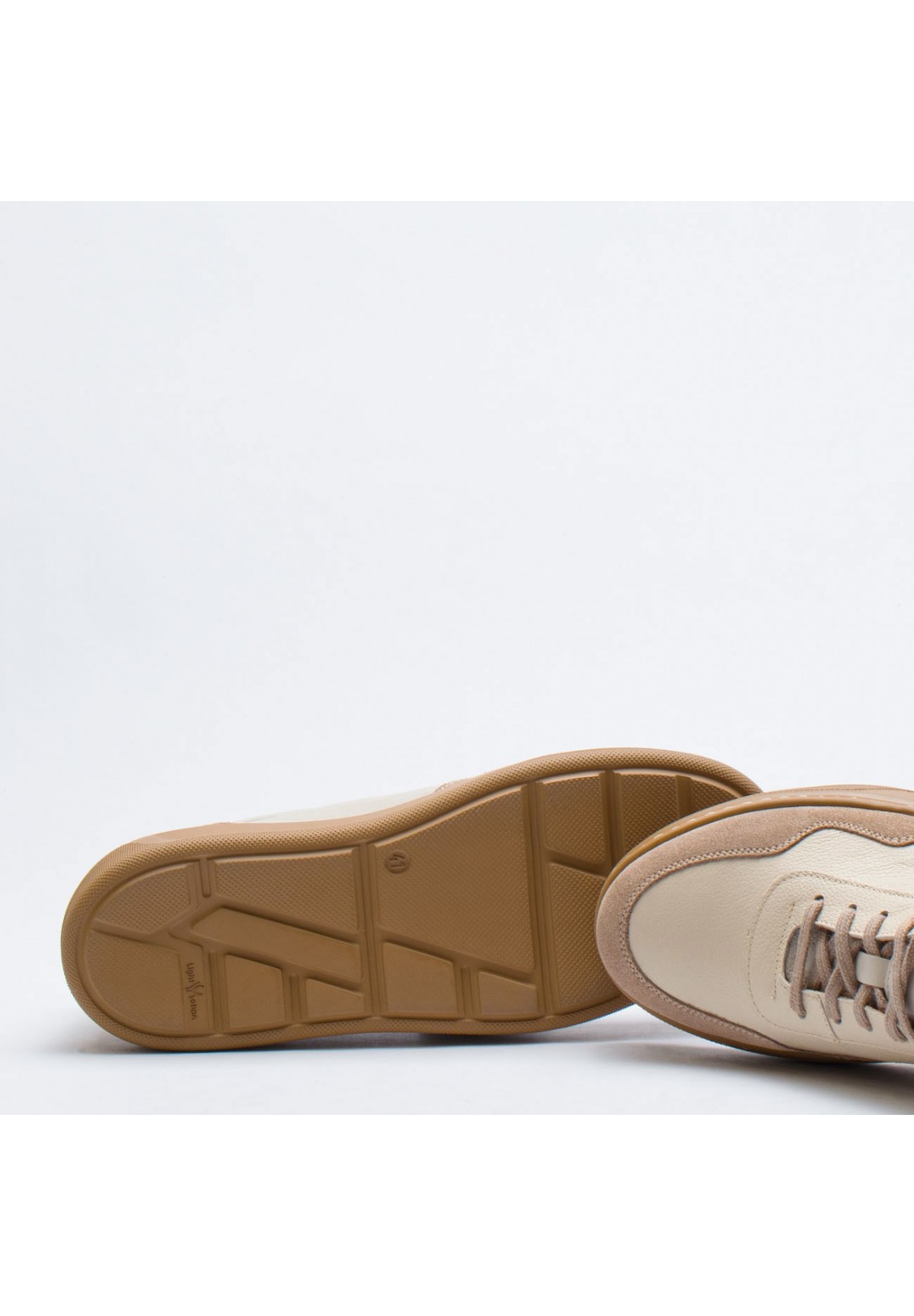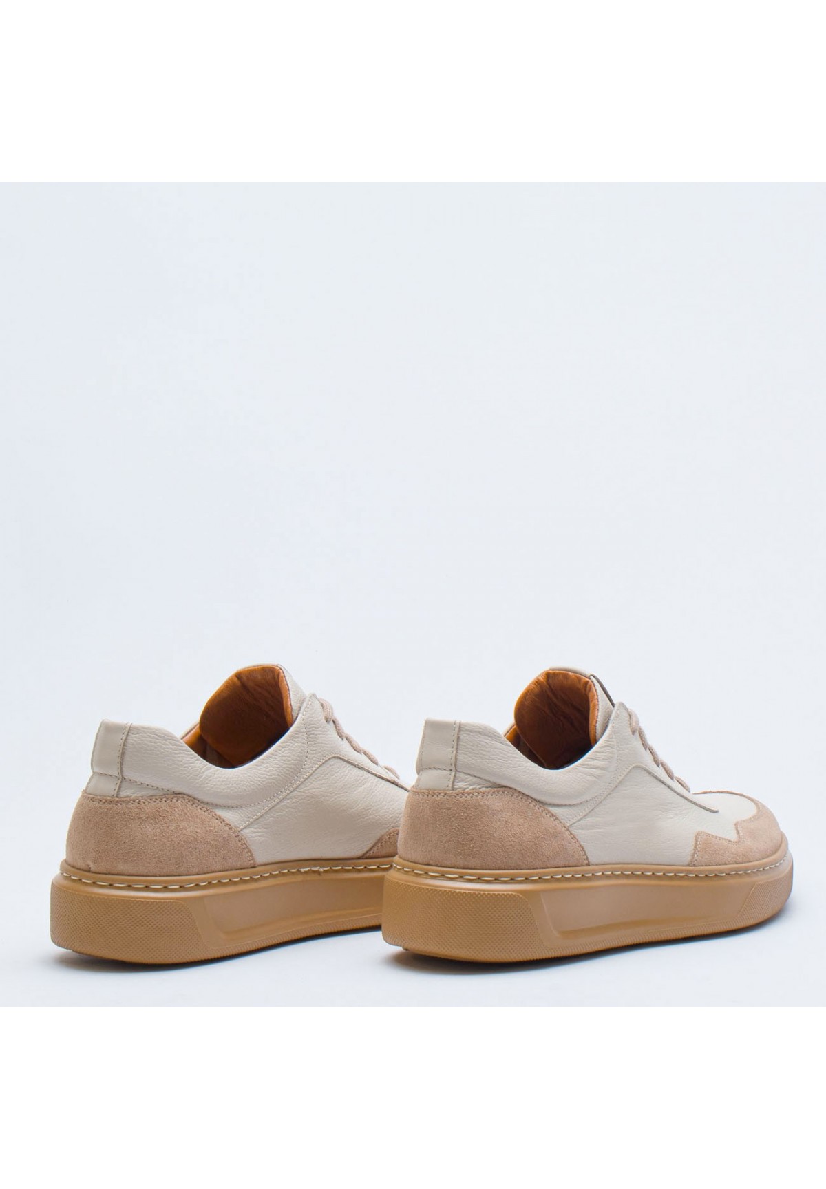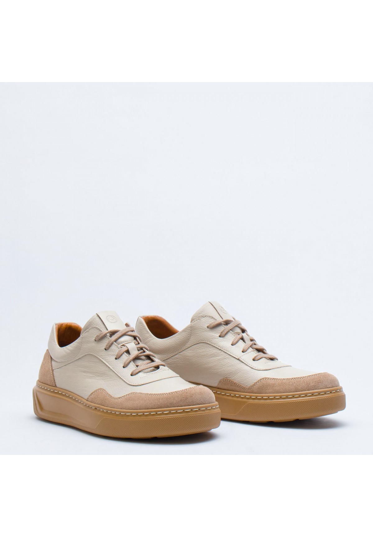 Beżowe półbuty sportowe z welurowymi wstawkami