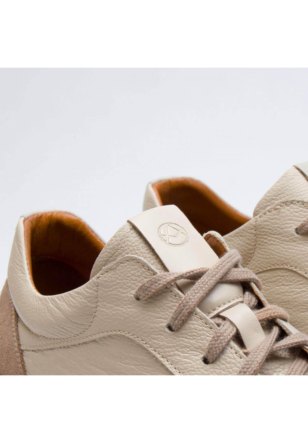 Casualowe buty męskie, które zachwycają swoim wyjątkowym stylem i solidnym wykonaniem. Wykonane z najwyższej jakości skóry naturalnej licowej. Ich design uzupełniają wstawki ze skóry welurowej, dodając niepowtarzalnego uroku i tekstury. Groszkowana faktura skóry nadaje tym butom wyjątkowego charakteru. Delikatne wykończenie sprawia, że każdy detal jest starannie przemyślany, tworząc niezapomniany efekt wizualny. Buty zostały osadzone na solidnej, beżowej podeszwie, która gwarantuje komfort i stabilność podczas noszenia. Sznurówki umożliwiają precyzyjne dopasowanie, zapewniając użytkownikowi idealne wsparcie i pewność kroku.