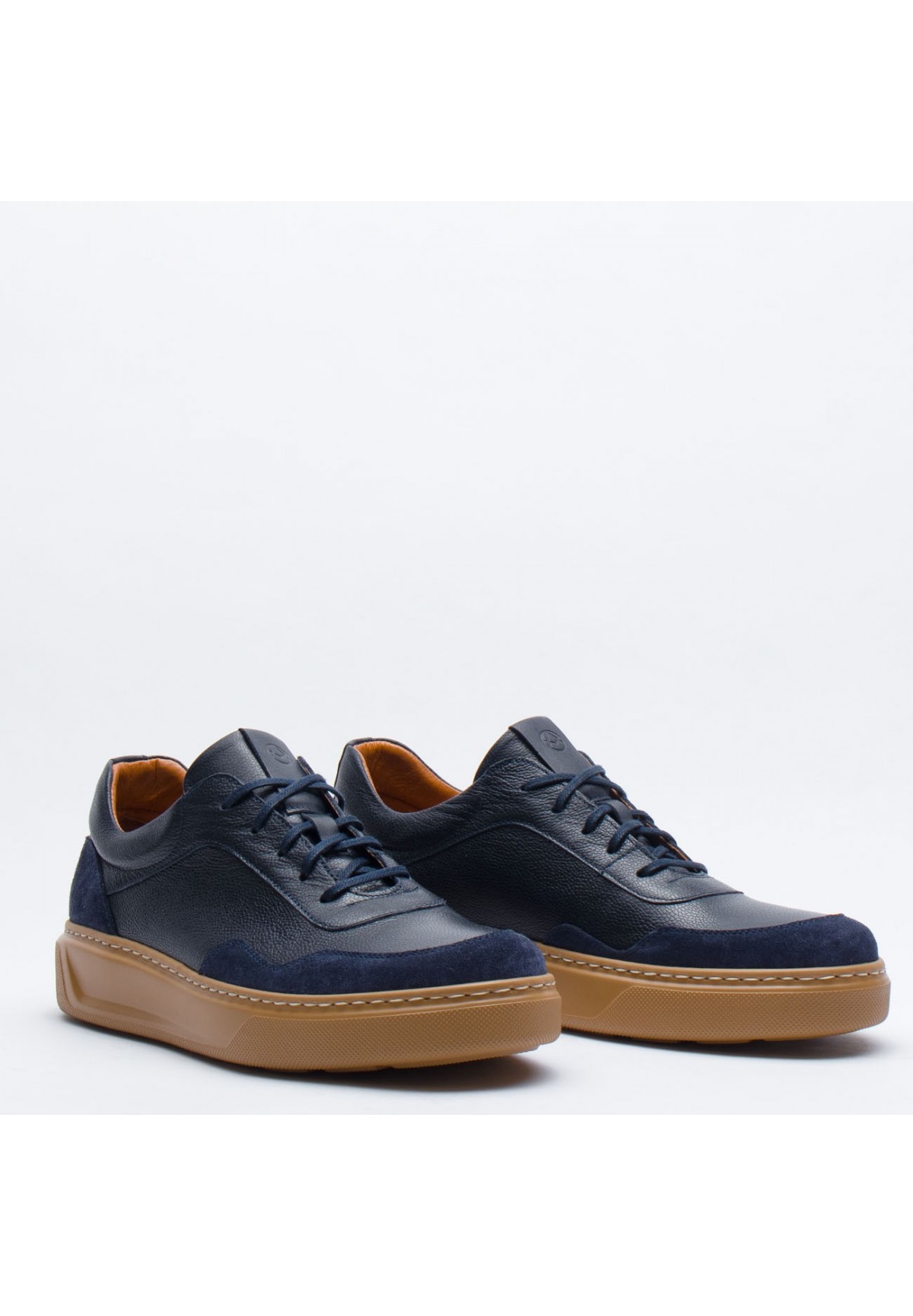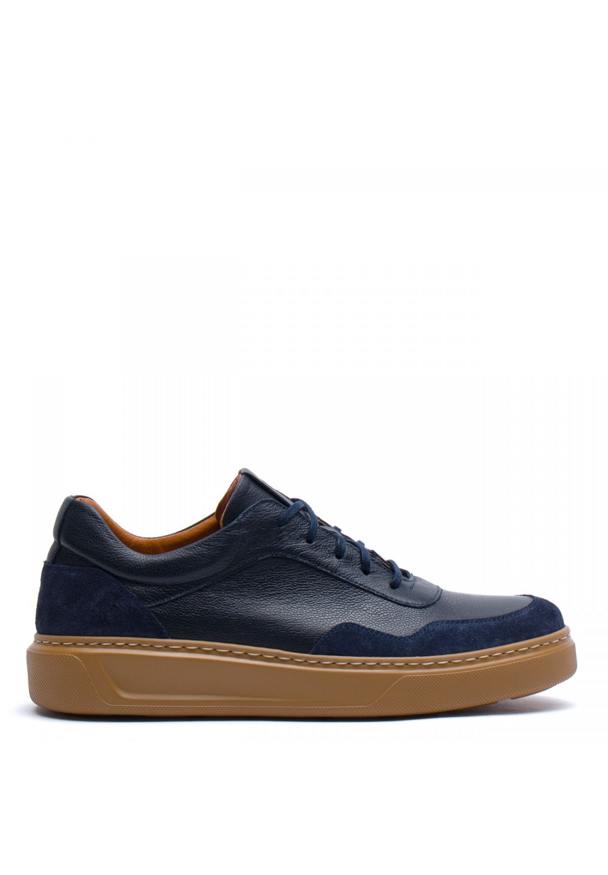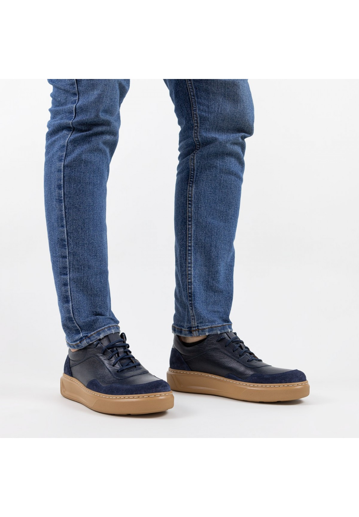 Casualowe buty męskie, które zachwycają swoim wyjątkowym stylem i solidnym wykonaniem. Wykonane z najwyższej jakości skóry naturalnej licowej. Ich design uzupełniają wstawki ze skóry welurowej, dodając niepowtarzalnego uroku i tekstury. Groszkowana faktura skóry nadaje tym butom wyjątkowego charakteru. Delikatne wykończenie sprawia, że każdy detal jest starannie przemyślany, tworząc niezapomniany efekt wizualny. Buty zostały osadzone na solidnej, beżowej podeszwie, która gwarantuje komfort i stabilność podczas noszenia. Sznurówki umożliwiają precyzyjne dopasowanie, zapewniając użytkownikowi idealne wsparcie i pewność kroku.
