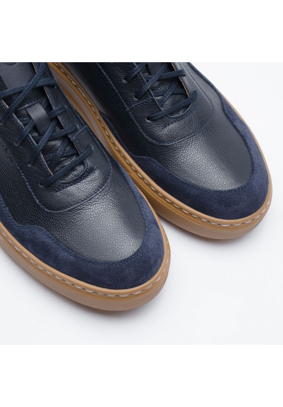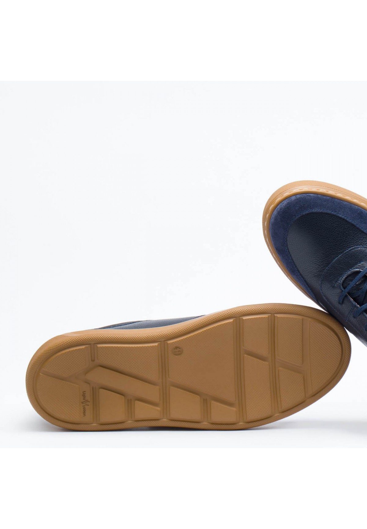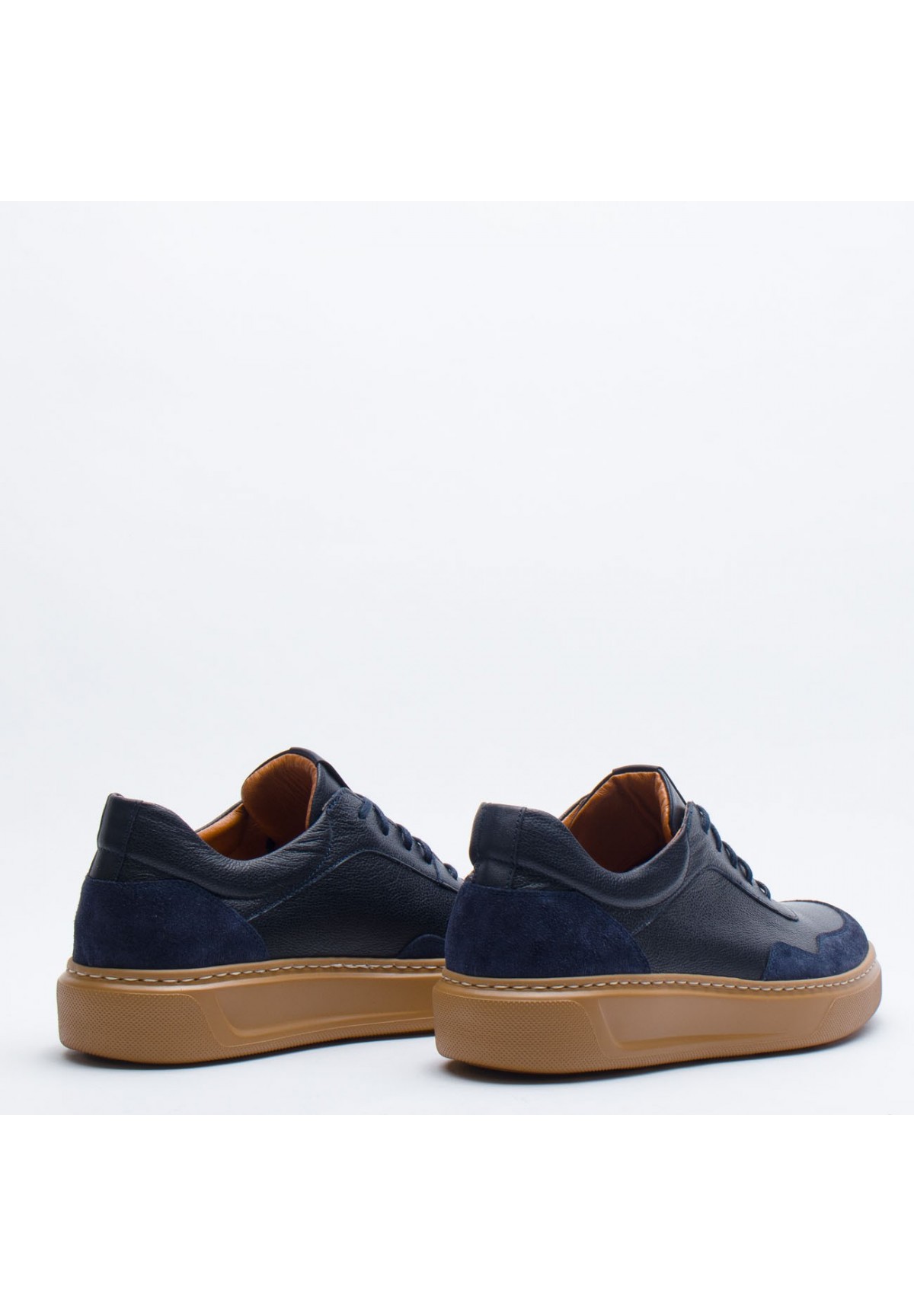Casualowe buty męskie, które zachwycają swoim wyjątkowym stylem i solidnym wykonaniem. Wykonane z najwyższej jakości skóry naturalnej licowej. Ich design uzupełniają wstawki ze skóry welurowej, dodając niepowtarzalnego uroku i tekstury. Groszkowana faktura skóry nadaje tym butom wyjątkowego charakteru. Delikatne wykończenie sprawia, że każdy detal jest starannie przemyślany, tworząc niezapomniany efekt wizualny. Buty zostały osadzone na solidnej, beżowej podeszwie, która gwarantuje komfort i stabilność podczas noszenia. Sznurówki umożliwiają precyzyjne dopasowanie, zapewniając użytkownikowi idealne wsparcie i pewność kroku.