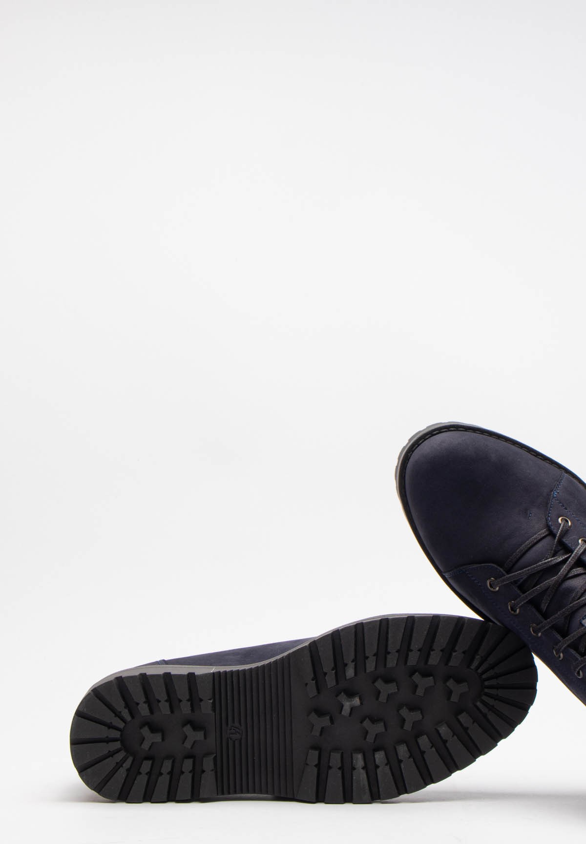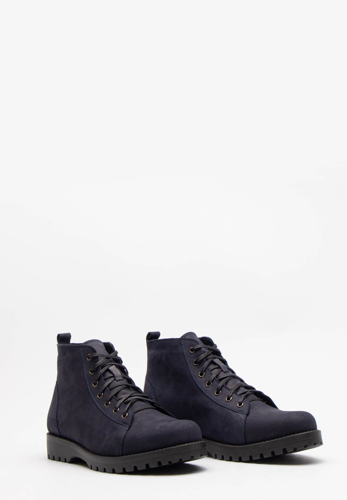 Męskie trzewiki wykonane z wysokiej jakości naturalnej skóry nubukowej w eleganckim, granatowym kolorze. Dzięki ociepleniu filcem, buty te zapewniają ciepło i komfort w chłodniejsze dni, co sprawia, że są doskonałym wyborem na jesień i zimę. Sznurowane z przodu, pozwalają na precyzyjne dopasowanie do stopy, a gruba podeszwa gwarantuje dobrą izolację od zimna i pewny krok na różnych nawierzchniach. To solidne, stylowe obuwie, które łączy w sobie funkcjonalność z nowoczesnym designem.